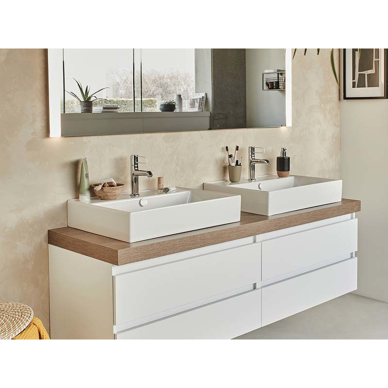 Раковина подвесная /накладная на мебель EXBH112-00 VIVIENNE от французского поставщика JACOB DELAFON имеет габариты 46,6x12x61 . С отверстием перелива , которое предотвращает переполнение раковины водой при использовании . С одним отверстием для смесителя . Донный клапан , сифон , смеситель и комплект креплений приобретаются отдельно .Кроме того, модель EXBH112-00 VIVIENNE от JACOB DELAFON оснащена удобной чашей с оптимальными размерами, которая обеспечивает комфортное использование. Она представлена в классическом белом цвете и имеет геометрический тонкий край. Возможны два варианта установки раковины: на мебель или подвесным способом , что позволяет подобрать оптимальный вариант для любого интерьера ванной комнаты. Она выполнена из качественных материалов (огнеупорная керамика) , что гарантирует ее долговечность и сохранение первоначального вида на протяжении всего срока службы. Раковина имеет прямоугольную форму и компактные размеры, это позволяет устанавливать ее даже в небольших помещениях. Раковина идеально вписывается в современный интерьер. Дизайн раковины сочетает в себе функциональность и эстетику, что делает ее идеальным выбором для тех, кто ценит комфорт и стиль в одном изделии.