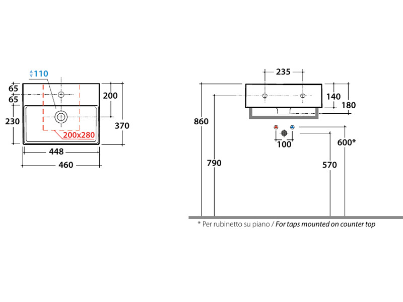 Раковина подвесная GLOBO Incantho IN046.BI/1 hole или накладная, одно отверстие под смеситель, в комплекте с креплением, размер 46х37x14 см, цвет белый.