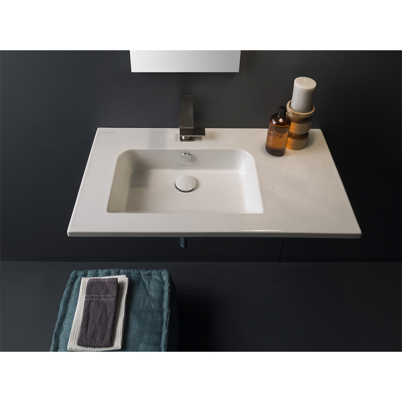 SCARABEO ETRA 5211 Раковина подвесная с одним отверстием под смеситель, с сливом-переливом. Размеры: 82,5x47x13,5h см. Настенные крепления входят в комплект. Цвет белый.
