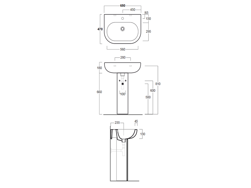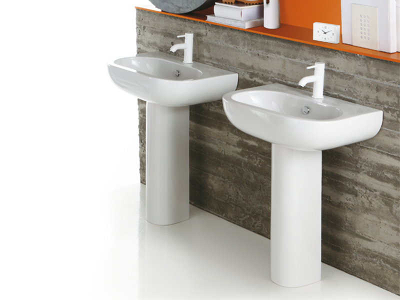 Раковина SIMAS E-LINE EL 05 bia/1 hole, с переливом, одним отверстием под смеситель, размер 65x47 см, цвет белый. Крепления F89 и колонная приобретаются отдельно.
