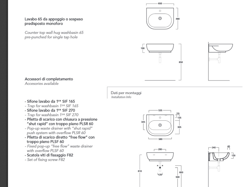 Раковина подвесная SIMAS E-LINE EL 10 bia/1 hole, с переливом, 1 отверстие для смесителя, размер 65x48 см, цвет белый.