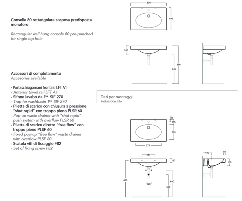 Раковина подвесная SIMAS LFT SPAZIO LFT 44 bia, с переливом, без отверстий под смеситель (1 намеченное отверстие), размер 80х49.5х20.5 см, цвет белый. Комплект креплений приобретается отдельно.