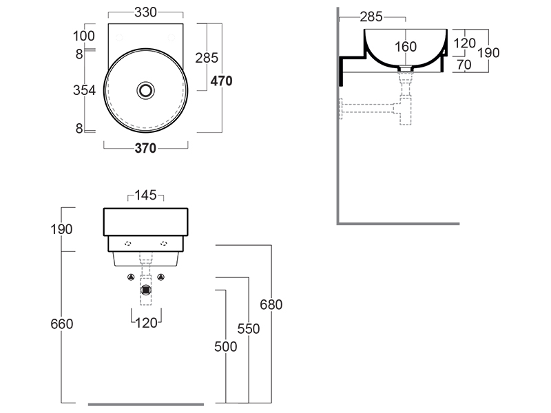 Её можно установить, как на столешницу или тумбу, так и на стену. Для установки раковины на стену необходимо дополнительно приобрести крепления арт. F 89. Так же раковину можно укомплектовать донным клапаном белым глянцевым арт. PLCE или хромированным арт. PLCR.
