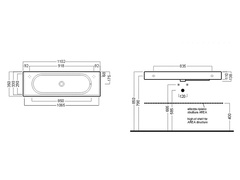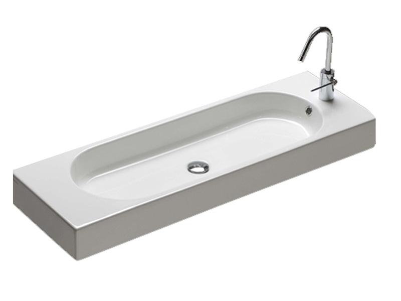 Недостатки: Обратите внимание на ширину раковины, она ОЧЕНЬ узкая. К сожалению, из метровых раковин без дырок под кран чуть ли не единственная в наличии в России.