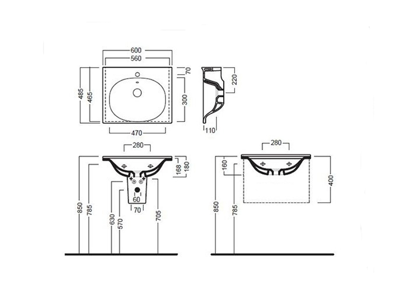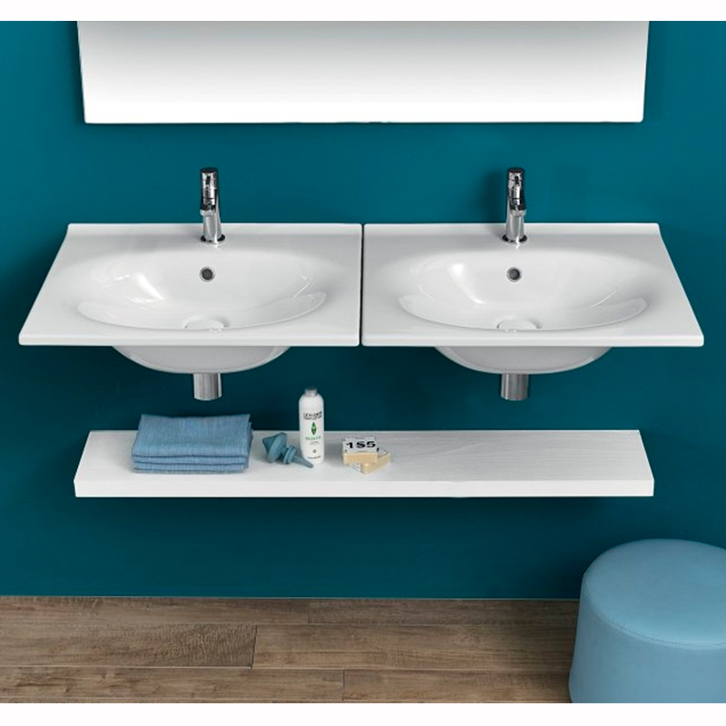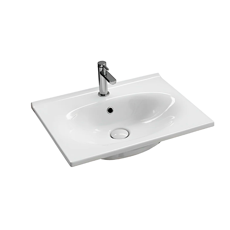 Раковина подвесная или встраиваемая HATRIA LE FIABE Y1BR01, одно отверстие для смесителя, с переливом, размер 60х48.5 см, цвет белый. Монтируется на стену с помощью крепежа (в комплекте), также возможен монтаж на тумбу.
