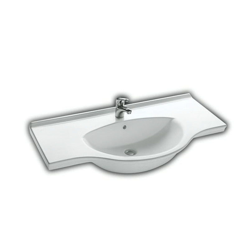 Раковина подвесная\встраиваемая HATRIA SOPHIE YU9001, размер 105х49.5 см, цвет белый, с переливом. Раковина поставляется под смеситель на одно, по запросу на три отверстия. Монтируется на стену или мебель. Крепежные элементы (2 штуки), сифон, донный клапан и смеситель приобретаются отдельно.