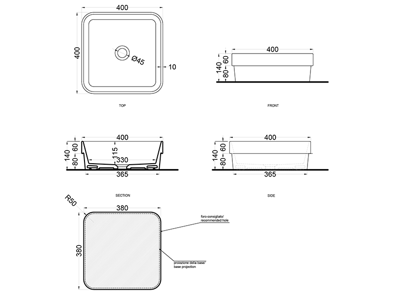 | Отверстие под смеситель | Отсутствует |