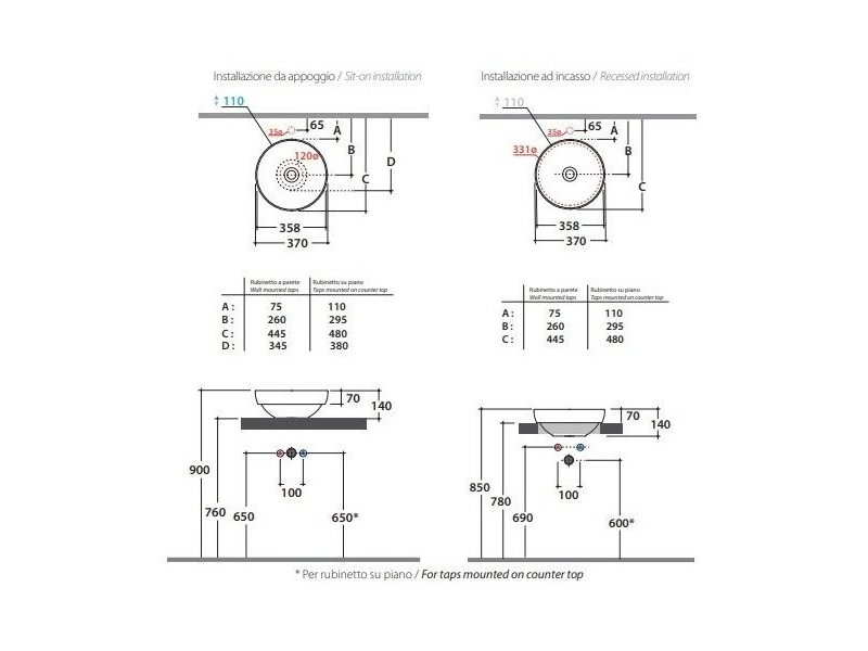 | Установка | На столешницу, На структуру, Накладная |