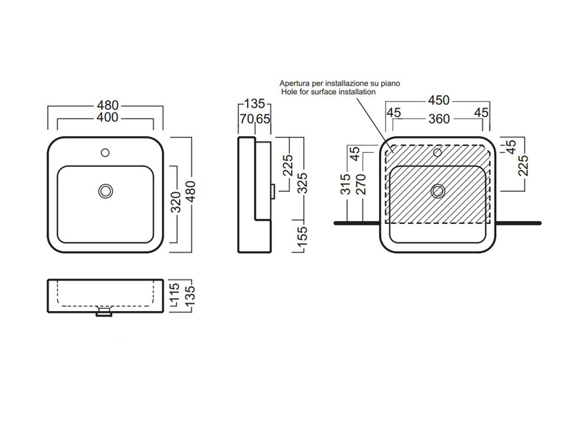Раковина полувстраиваемая HATRIA HAPPY HOUR Y0M801, размер 48х48x13.5 см, цвет белый. Раковина с одним центральным отверстием под смеситель; с переливом. Устанавливается на подстолья и столешницы. Крепления приобретаются отдельно.