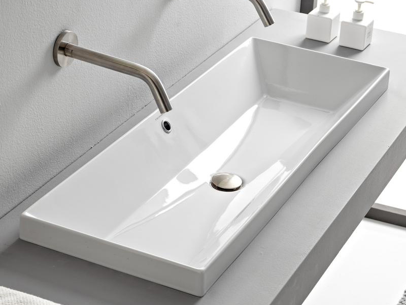 SCARABEO TEOREMA 2.0 5133 Раковина встраиваемая с сливом-переливом, без отверстия под смеситель. Размеры: 100x36x17h см. Высота борта раковины над столешницей 5см. Цвет White.