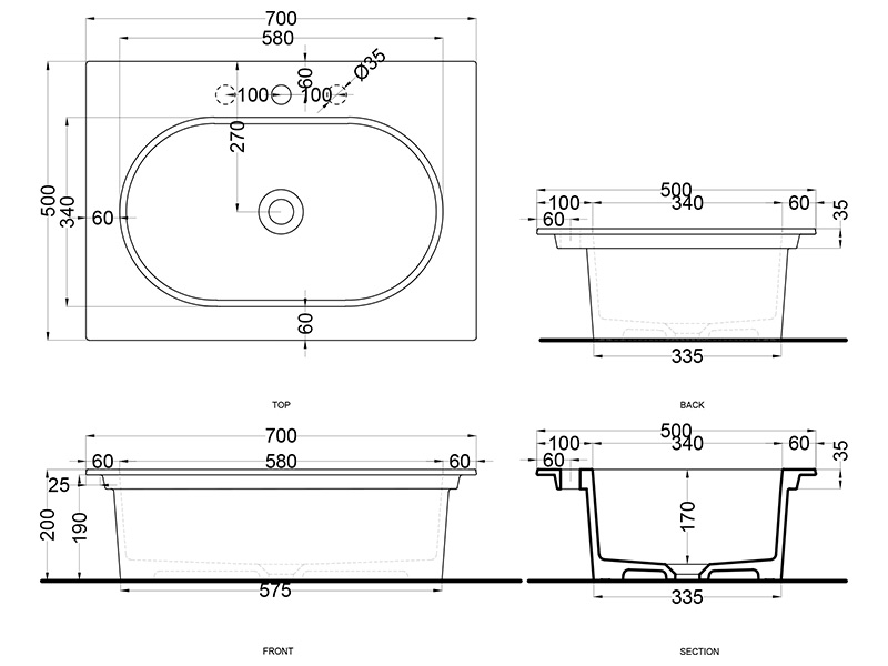 | Отверстие под смеситель | Одно |