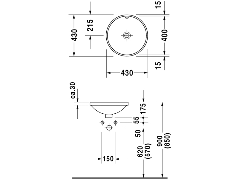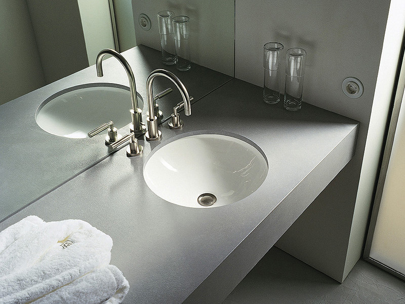 ARCHITEC Умывальник встраиваемый снизу, без перелива, без плоскости под смеситель, без отверстия для смесителя, глазурованный снизу, включая крепление для встраивания в деревянную столешницу, диаметр 40 см, цвет белый