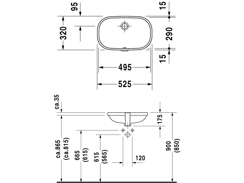 D-CODE Раковина для встраивания снизу, с переливом, без плоскости под смеситель, крепление включено, размер 49.5х29 см, цвет белый