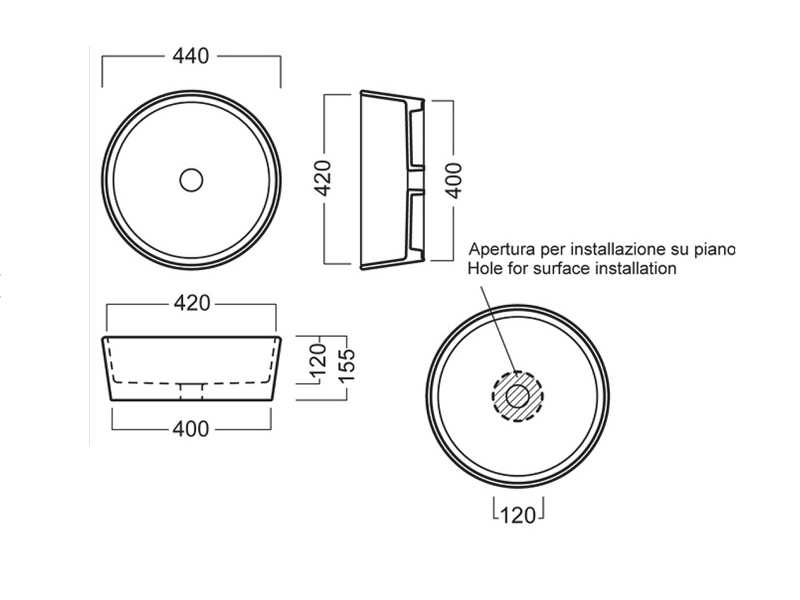 | Отверстие под смеситель | Отсутствует |