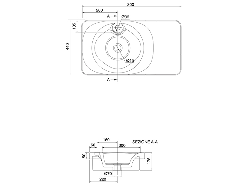 Размеры прямоугольной раковины равны 80x44x17,5 см, а высота борта над столешницей составляет 5 см. Эти параметры делают FUJI 6014 функциональной и подходящей для разнообразных ванных комнат.