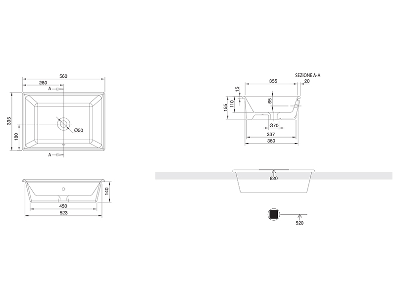 Созданная с заботой о каждой детали, раковина имеет компактные размеры 56x39,5x15,5 см, что делает ее идеальным выбором для небольших ванных комнат. Высота борта раковины Scarabeo над столешницей составляет всего 1,5 см, что придает ей легкость и изысканность.