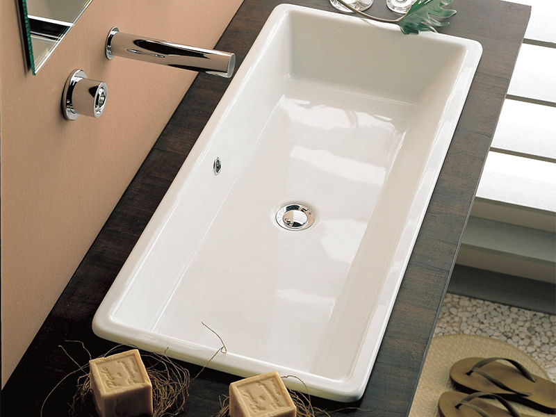 Scarabeo GAIA 8033 Раковина встраиваемая с переливом, без отверстия под смеситель. Размеры: 87,5x39,5x15,5h см. Высота борта раковины над столешницей 1,5см Цвет белый глянцевый.