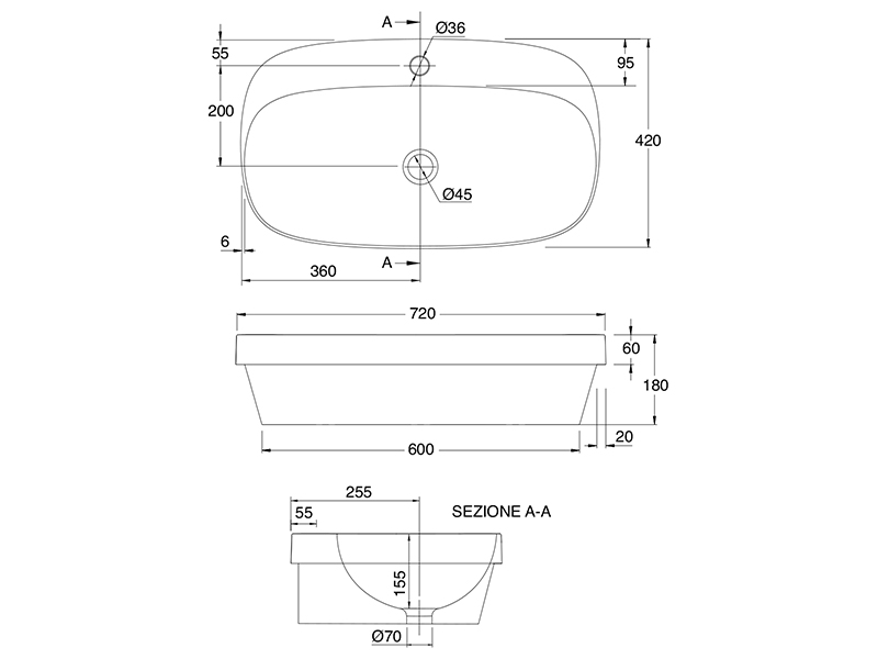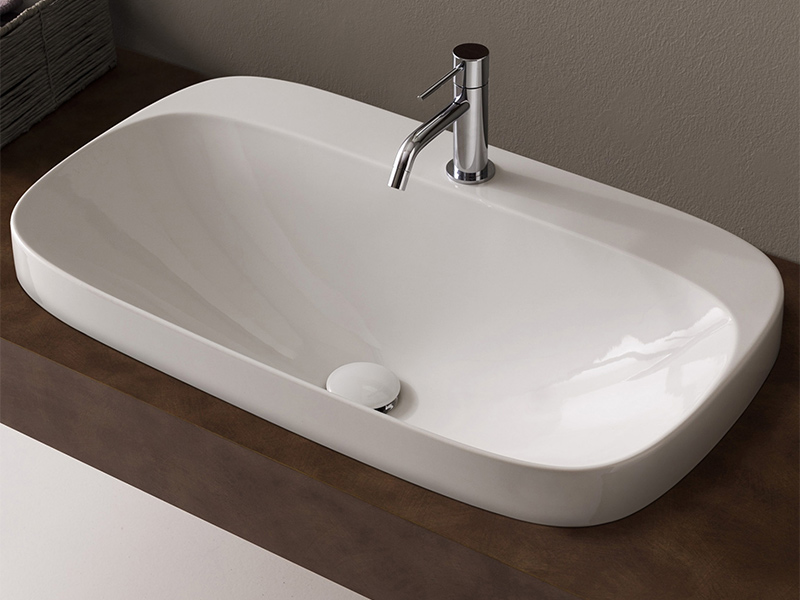 SCARABEO MOON 5512 Раковина встраиваемая с одним отверстием под смеситель, без перелива. Размеры: 72x42x18h см. Высота борта раковины над столешницей 6см .цвет White.