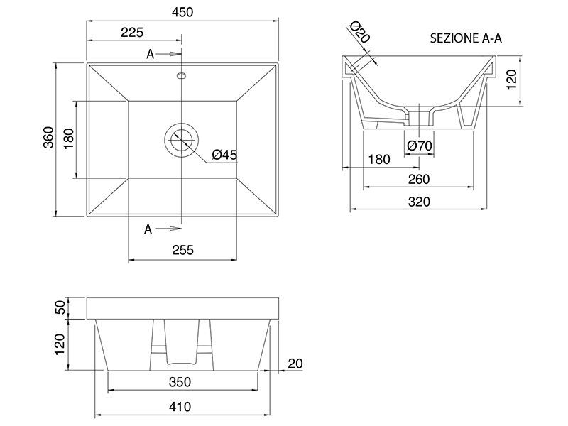 SCARABEO TEOREMA 2.0 5134 Раковина встраиваемая с сливом-переливом, без отверстия под смеситель. Размеры: 45x36x17h см. Высота борта раковины над столешницей 5см. Цвет White.
