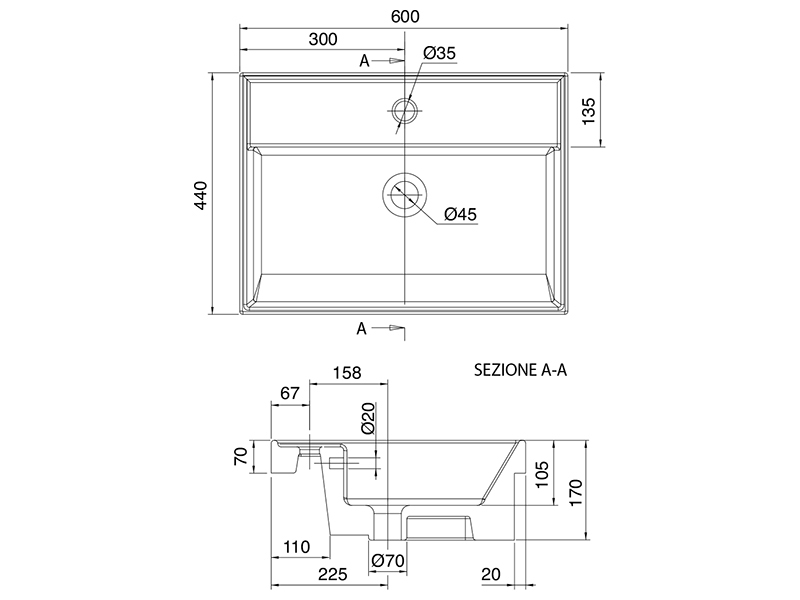 SCARABEO TEOREMA 2.0 BUILT-IN 5109 Раковина встраиваемая с одним отверстием под смеситель, с сливом - переливом. Размеры: 60x44x17h см. Высота борта раковины над столешницей 7см. Цвет Ardesia.