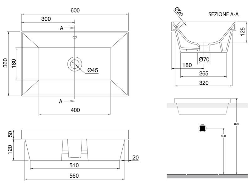 SCARABEO TEOREMA 2.0 5131 Раковина полувстраиваемая без отверстия под смеситель, с сливом-переливом. Высота борта раковины над столешницей 5см.Размеры: 60x36x17h см. Цвет Pearl.