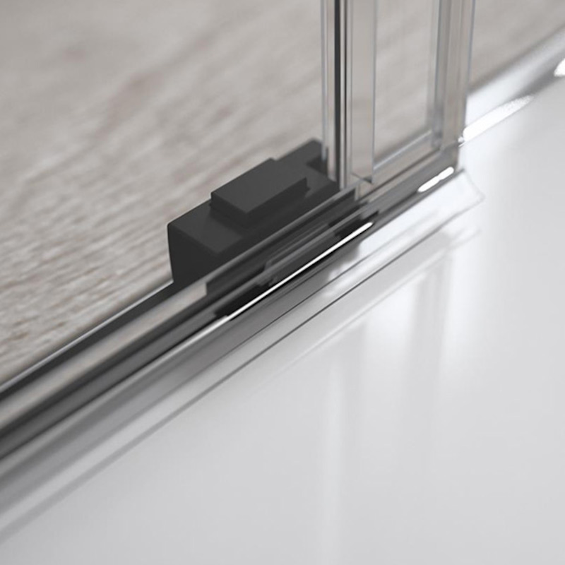 Коллекция Idea в стиле настоящего минимализма — двойные ролики спрятаны внутри профилей, на пристенных профилях отсутствуют даже заглушки болтов — в место них маскировочная лента Nastro Chromo. Все душевые ограждения из этой коллекции можно устанавливать как на поддон так и на пол. А также, установка душевых ограждений Idea DWD возможна как с порогом, так и без него, меняя нижний фиксатор (в комплекте).
