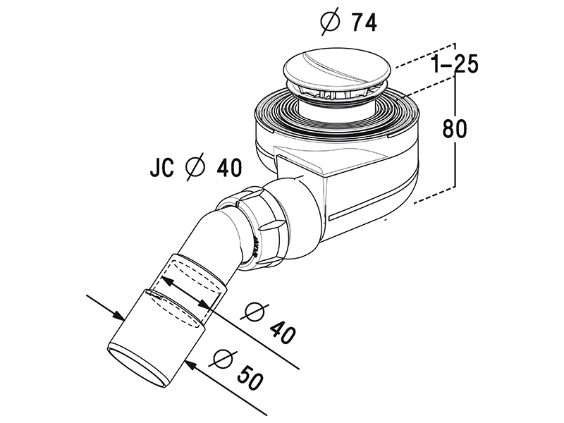 Сифон для поддона RADAWAY TB50P под отверстие в поддоне Ø50мм, самоочищающийся, высокая пропускная способность 54л/мин. Декоративная хромированная крышка диаметром 74мм, угол изгиба сливной трубы 135°. Шарнирная система позволяет регулировать направление сливной трубы. Диаметр сливной трубы 40/50мм. Высота сифона 80мм