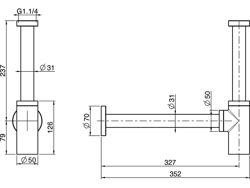 Сифон для раковины Fima Carlo Frattini SPILLO STEEL F409INOX, на 1"1/4, из нержавеющей стали,.