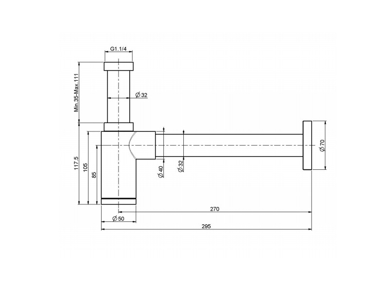 Сифон для раковины F406CR, 1+1/4, цвет хром.