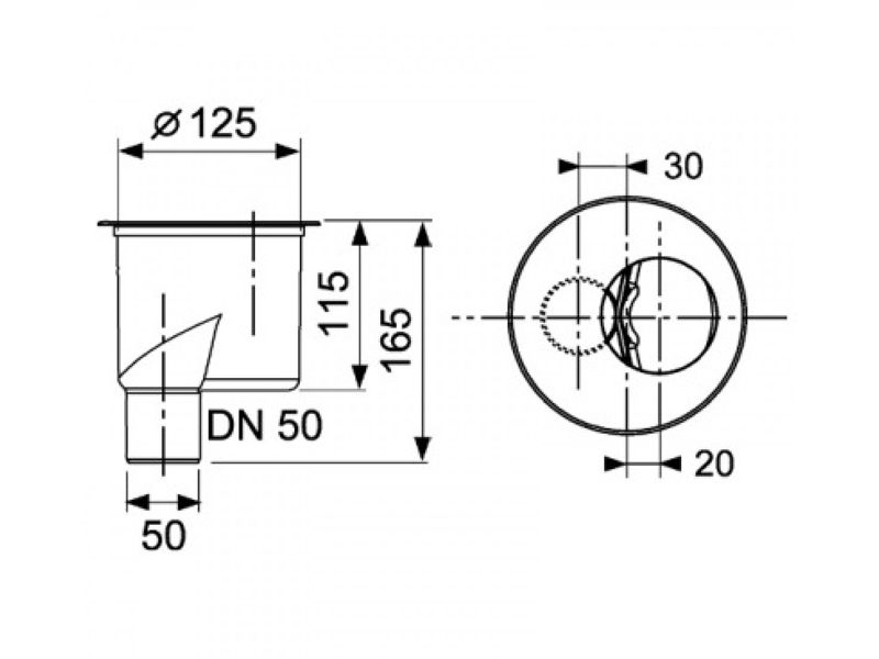 - Уровень гидрозатвора = 50 мм согласно DIN EN 1253