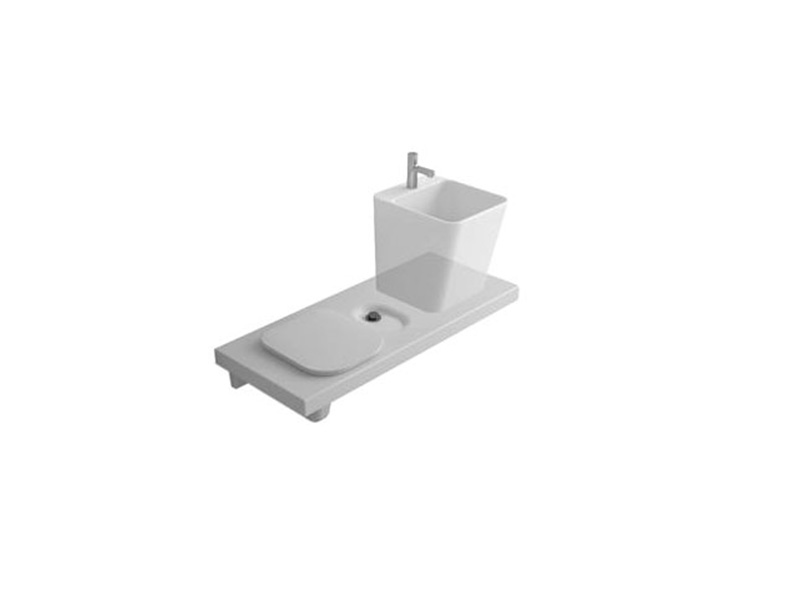 Система керамическая подвесная HATRIA G-FULL YXJX01, унитаз и место для раковины в одном корпусе - унитаз слева, размер 120х50 см, цвет белый. В комплекте поставки: лавочка с унитазом, крышка для унитаза, кнопка смыва, сифон для раковины, крепления. Дополнительно можно приобрести раковину накладную, инсталляцию, выдвижной ящик и донный клапан.