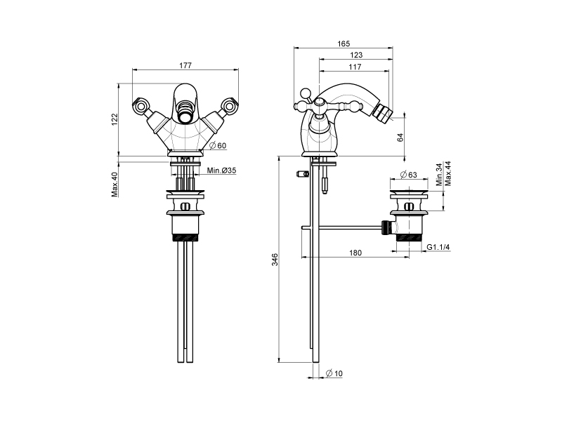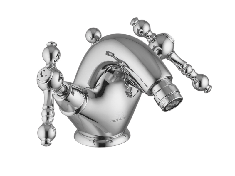 Смеситель для биде FIMA CARLO FRATTINI EPOQUE F5062/2CR на 1 отверстие, с 2 гибкими шлангами 350 мм, с донным клапаном 1”1/4 с переливом, цвет хром.