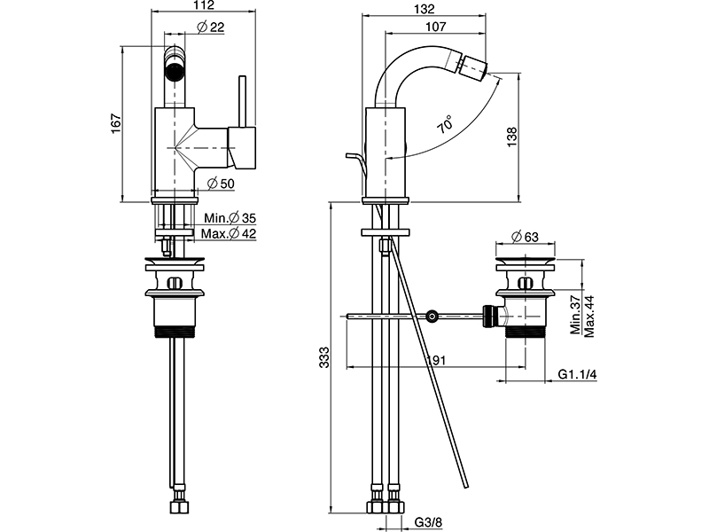 Смеситель для биде Fima Carlo Frattini SPILLO UP F3042NS с вращающимся изливом, гибкими шлангами, донным клапаном click-clack, цвет черный матовый.