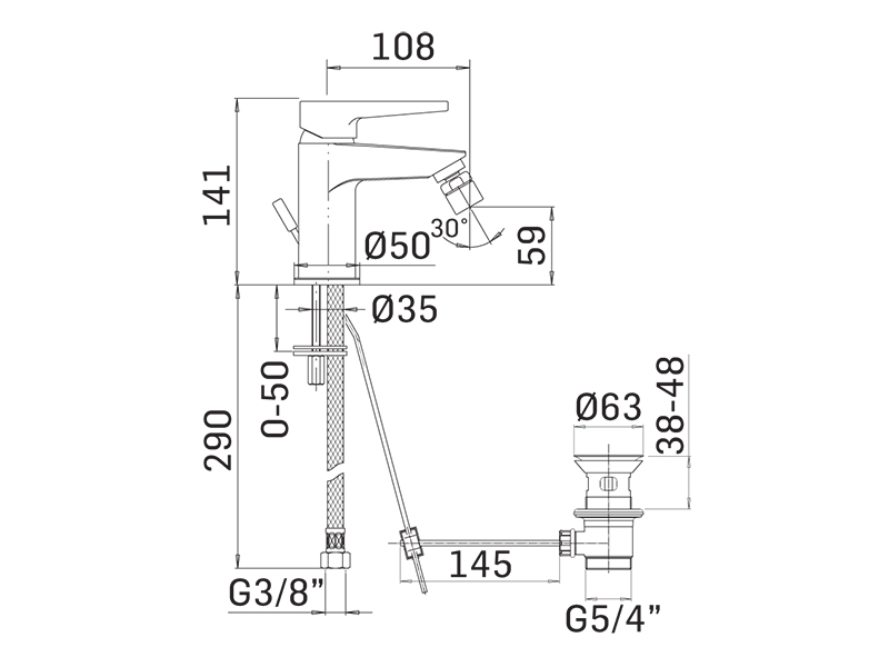 LOGOS+ Смеситель для биде на 1отв с донным клапаном, цвет Chrome