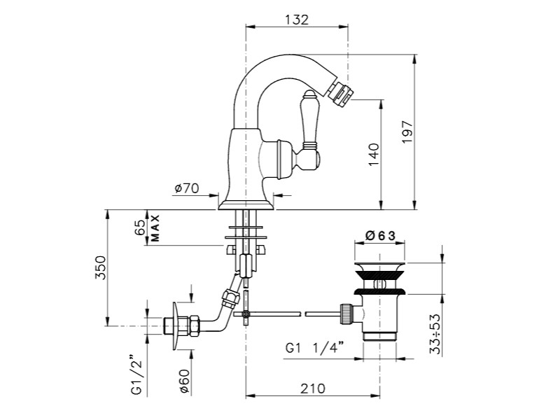 Смеситель для биде NICOLAZZI EL CAPITAN 3455CR75C однорычажный, с донным клапаном, на 1 отверстие, цвет хром, декор El Capitan.