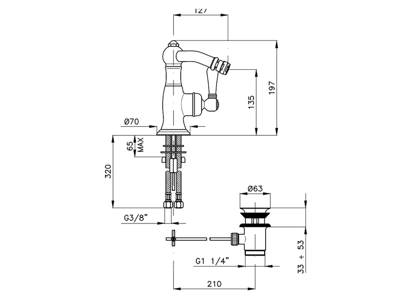 NICOLAZZI CINQUANTA Смеситель для биде однорычажный с автоматическим сливом на одно отверстие с донным клапаном, цвет bronzato.