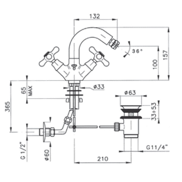 NUOVA BRENTA Смеситель для биде на 1отв. с донным клапаном, с поворотным изливом, цвет cromo