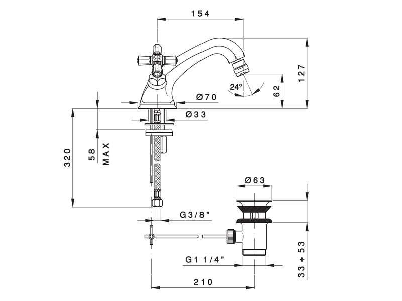 TEIDE FOUR Смеситель для биде на 1отв. с донным клапаном, цвет бронза