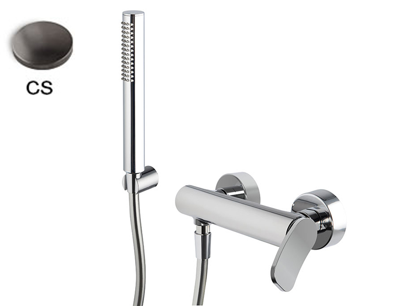 Смеситель для душа с душевым комплектом Fima Carlo Frattini FLO' F3805CS, 2 подвода воды 1/2 с эксцентриком, держатель для душа, ручной душ с защитой от извести анти-кальк, гибкий шланг хромалюкс 1500 мм, цвет черный хром брашированный.