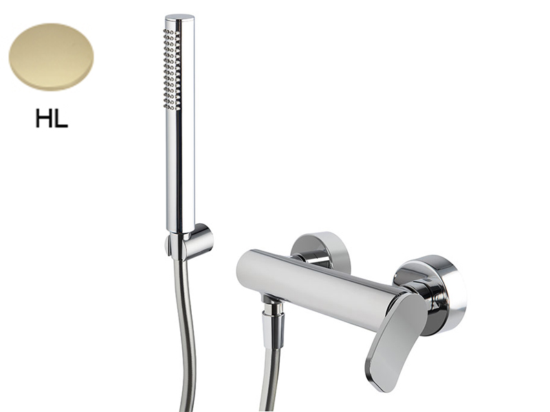 Смеситель для душа с душевым комплектом Fima Carlo Frattini FLO' F3805HL, 2 подвода воды 1/2 с эксцентриком, держатель для душа, ручной душ с защитой от извести анти-кальк, гибкий шланг хромалюкс 1500 мм, цвет шампань.