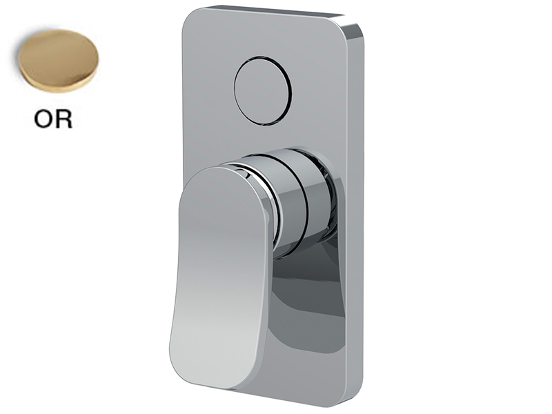 Встроенный смеситель с переключателем на 2 источника Fima Carlo Frattini FLO' F3809E2OR, только внешняя часть, кнопочный переключатель, металлическая пластина, внутренняя часть (арт. F3800) заказывается отдельно, цвет золото.