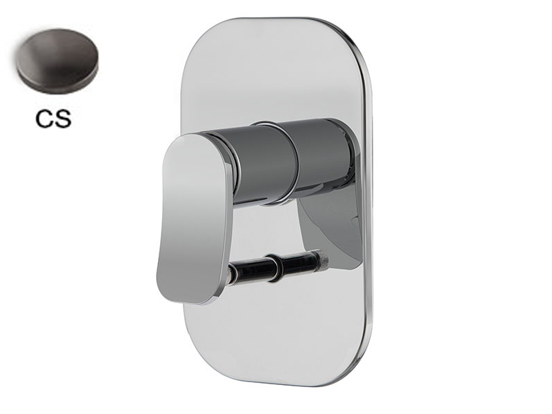Встроенный смеситель для душа с переключателем на 2 источника Fima Carlo Frattini FLO' F3809X2CS, цвет черный хром брашированный. Только внешняя часть, металлическая пластина, переключатель, внутренняя часть (арт. F3000) заказывается отдельно.