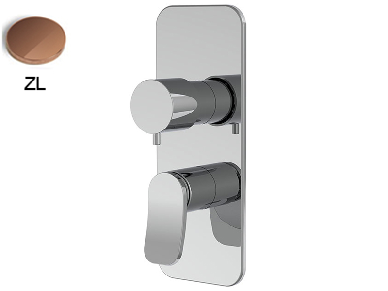 Встроенный смеситель с переключателем на 2/3 источника Fima Carlo Frattini FLO' F3809X6ZL, цвет янтарная бронза. Только внешняя часть, переключатель на 2/3 источника, металлическая пластина, внутренняя часть (арт. F4000) заказывается отдельно.