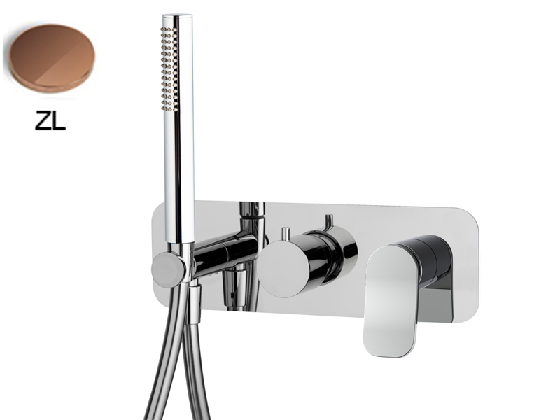 Встроенный смеситель для душа на 2 источника с душевым комплектом Fima Carlo Frattini FLO' F3819WX2ZL, цвет янтарная бронза. Только внешняя часть, держатель для душа с подводом воды, ручной душ с защитой от извести анти-кальк, переключатель, гибкий шланг хромалюкс 1500 мм, внутренняя часть (арт. F3400W) заказывается отдельно.