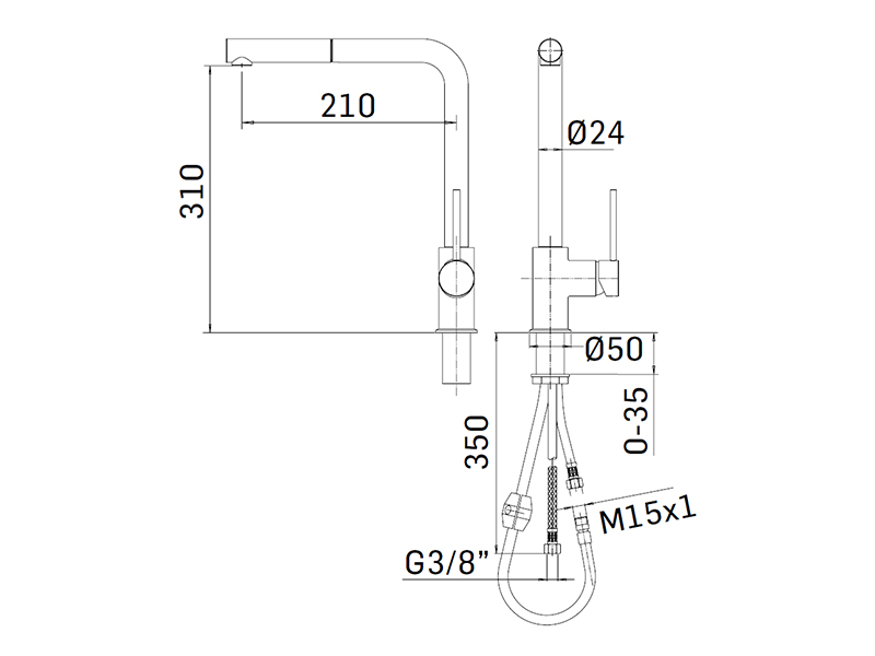 CUCINA Смеситель для кухни c вытяжной лейкой,на 1отв,без дон.клапана,Matt Black