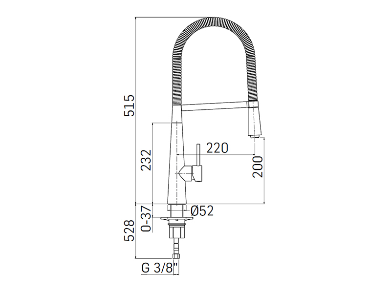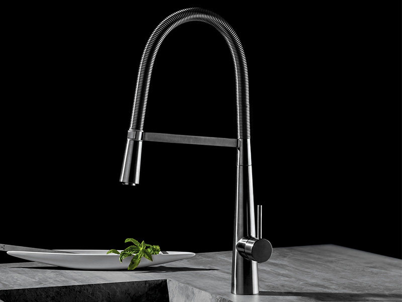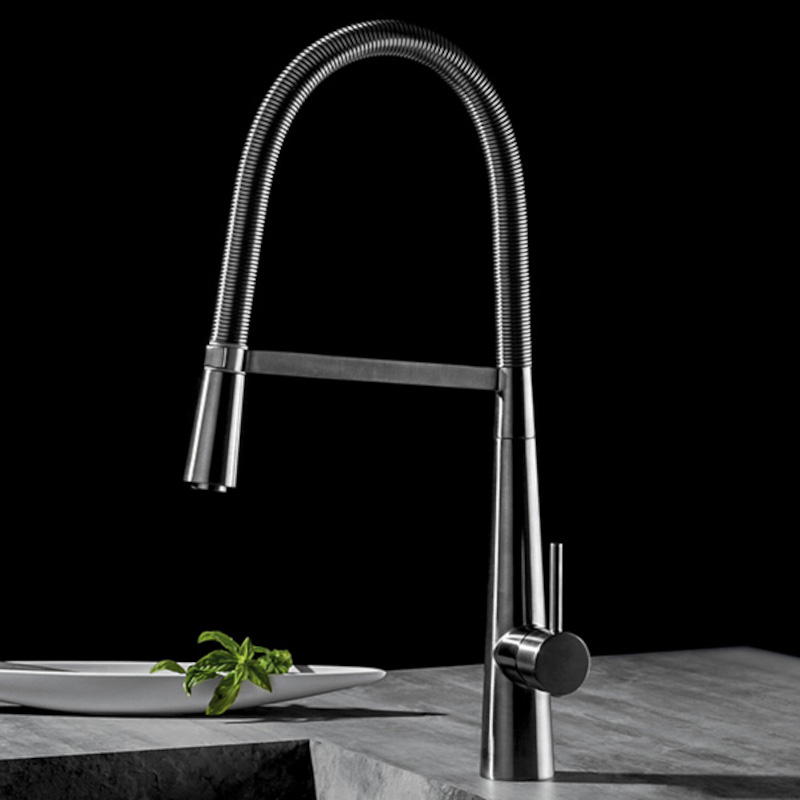 Смеситель для кухни, с гибким изливом, без донного клапана. Цвет Bruhed Inox