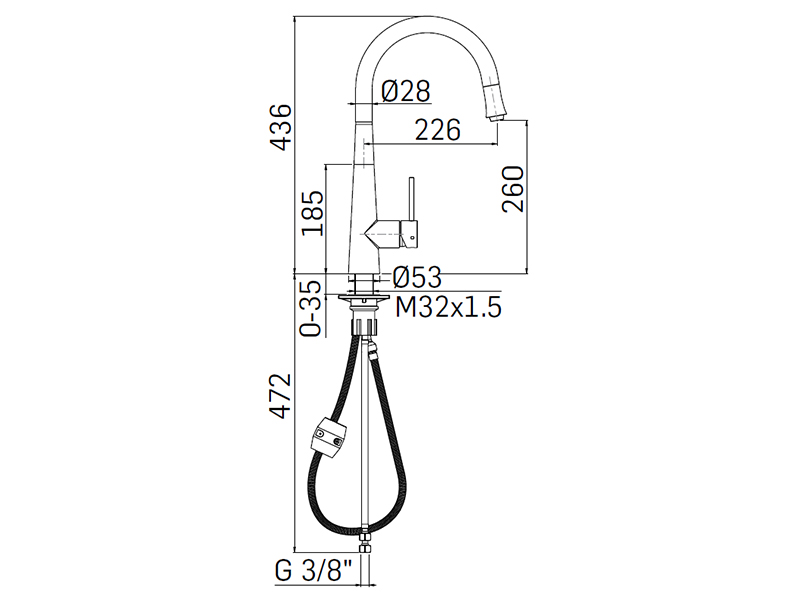 CUCINA Смеситель для кухни на 1отв,без донного клапана,Chrome