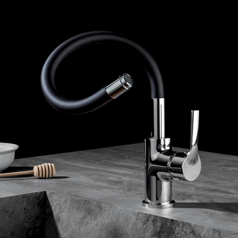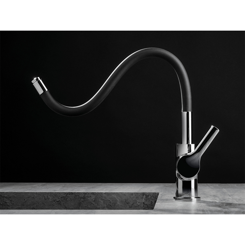CUCINA Смеситель для кухни MAMOLI 7249M0000001 однорычажный, на 1 отверстие, без донного клапана, цвет хром с черным изливом. Смеситель с гибким изливом.