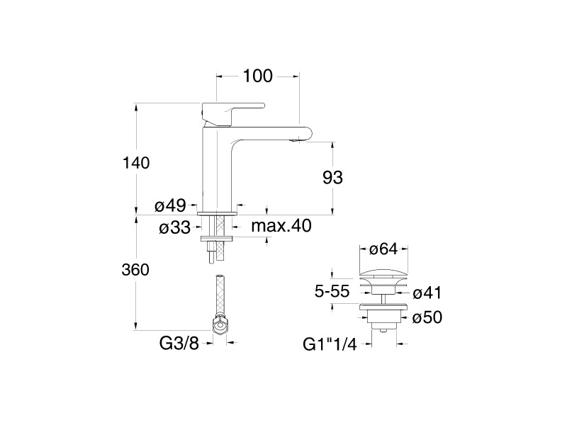 DELTA Смеситель для раковины с донным клапаном, черный матовый