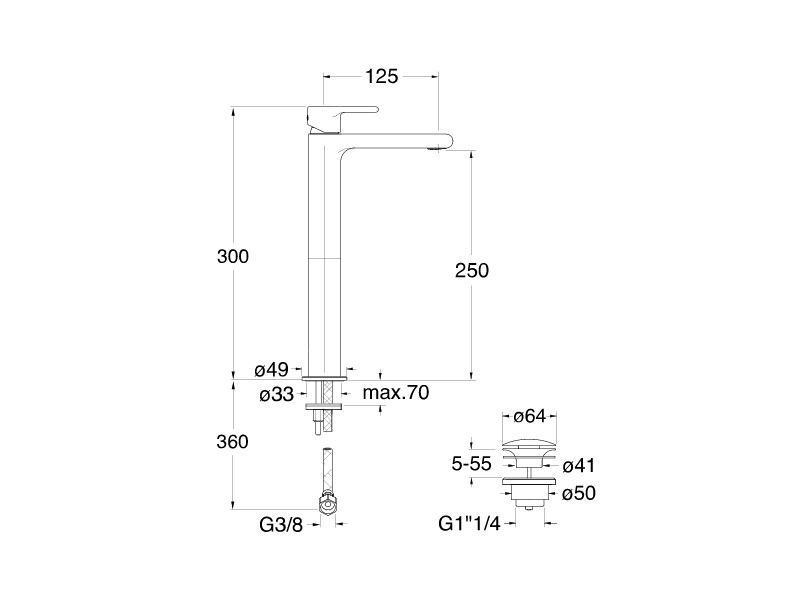 | Высота излива, см | 25 |
